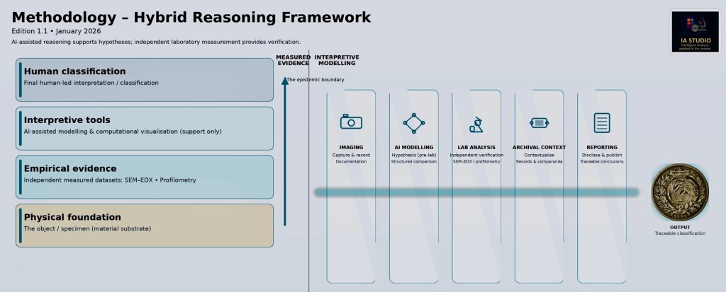 This page provides the official public documentation of the IA STUDIO Hybrid Reasoning Framework – a structured, transparent workflow that connects computational interpretation with verified laboratory evidence in numismatic and cultural-heritage research.